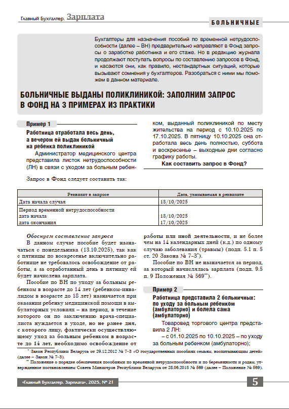 Рубрика содержит многокомпонентные статьи, в одной из которых рассмотрен порядок расчета пособия по временной нетрудоспособности работнику, который до устройства по основному месту работы работал в этой же организации по гражданско-правовому договору в течение 10 месяцев. Причем от момента заключения трудового договора до начала болезни прошло 5 месяцев, часть из которых он провел на курсах повышения квалификации.